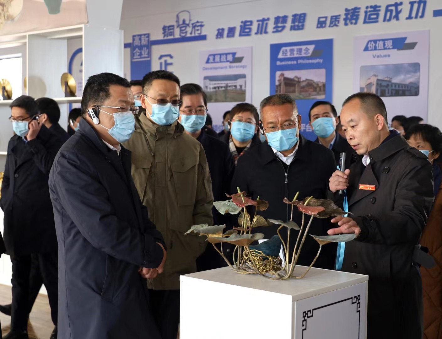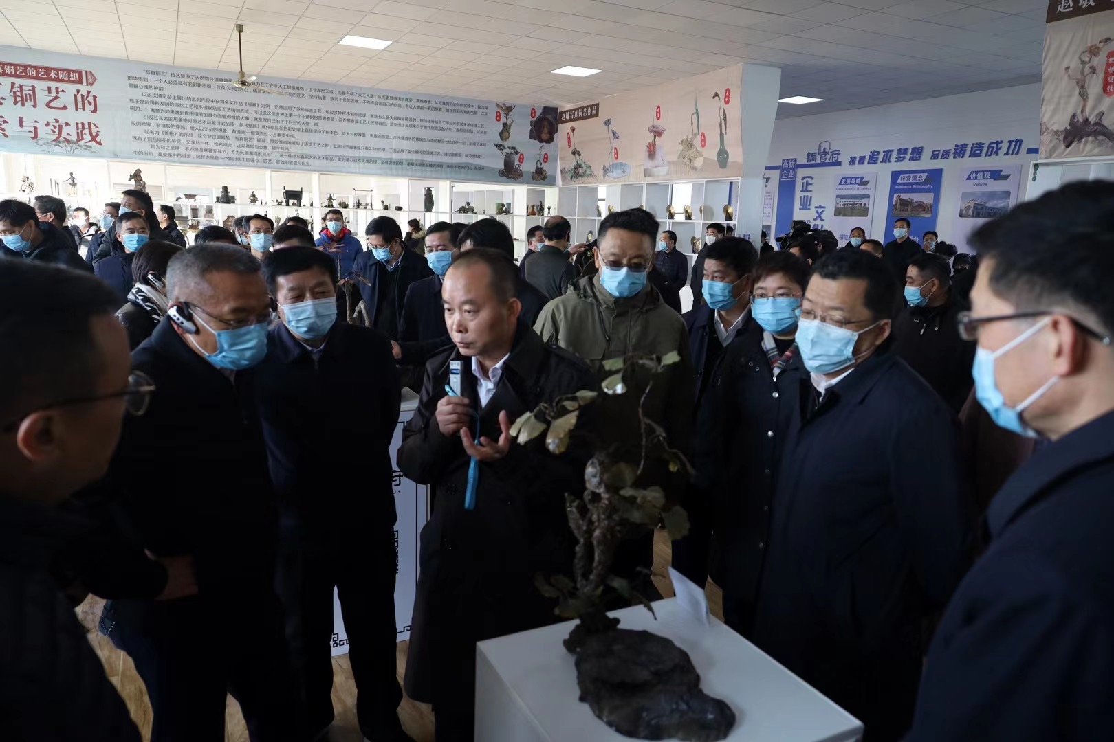 1月12日下午,中共銅陵市委十屆十四次全體(擴(kuò)大)會(huì)議期間,市委書記丁純,市委副書記、市長(zhǎng)胡啟生及各市直部門、開(kāi)發(fā)園區(qū)和縣區(qū)主要負(fù)責(zé)人等近百人,現(xiàn)場(chǎng)觀摩銅官府銅藝產(chǎn)業(yè)園。全體委員還集中參觀了全國(guó)景泰藍(lán)職業(yè)技能競(jìng)賽參加決賽選手作品以及趙敏的寫真銅藝作品等。
