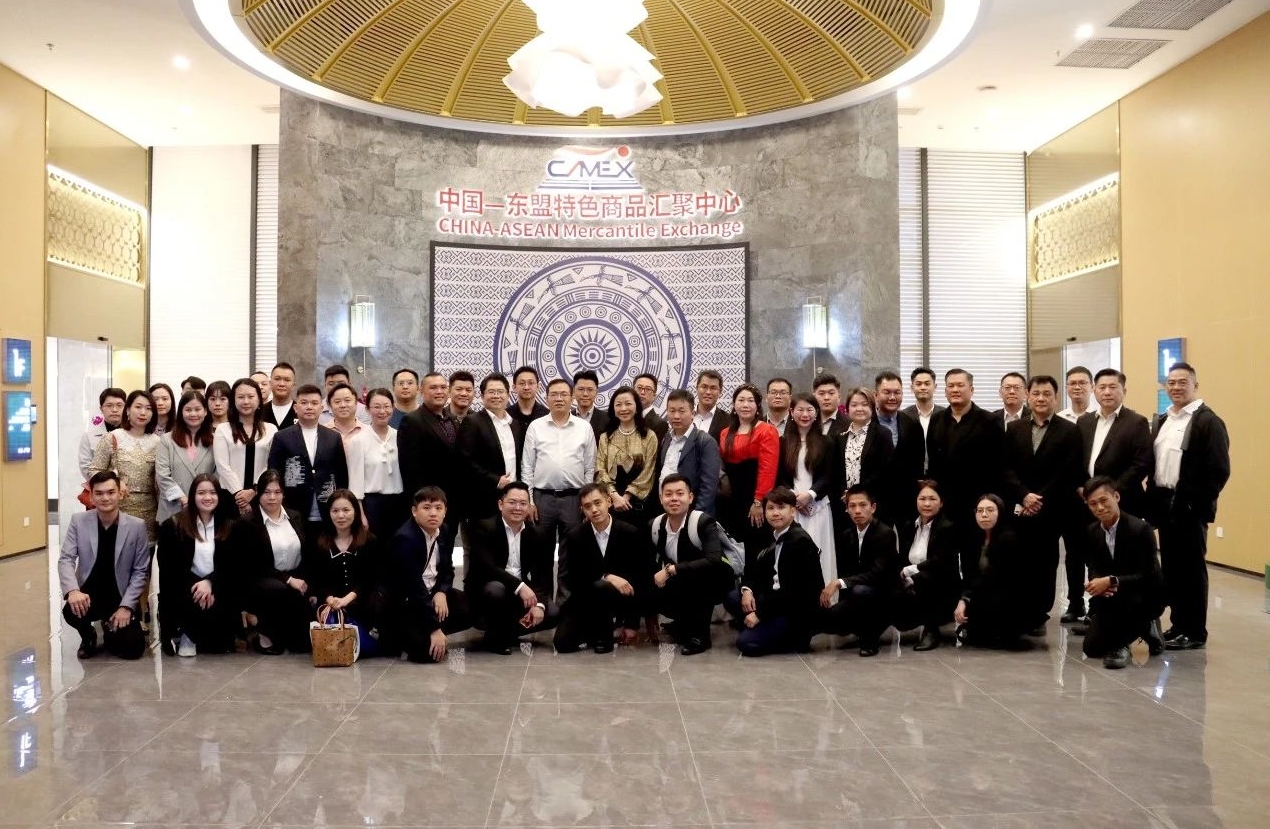 交流活動(dòng)期間,在廣西壯族自治區(qū)僑聯(lián)黨組成員、副主席秦偉鵬的帶領(lǐng)下,馬來西亞華裔青年一行于11月27日來到中國—東盟特色商品匯聚中心(簡稱“匯聚中心”)進(jìn)行實(shí)地參觀與調(diào)研。廣西新中產(chǎn)業(yè)投資有限公司、中國—東盟特色商品匯聚中心董事長趙海燕熱情接待了華裔青年一行。