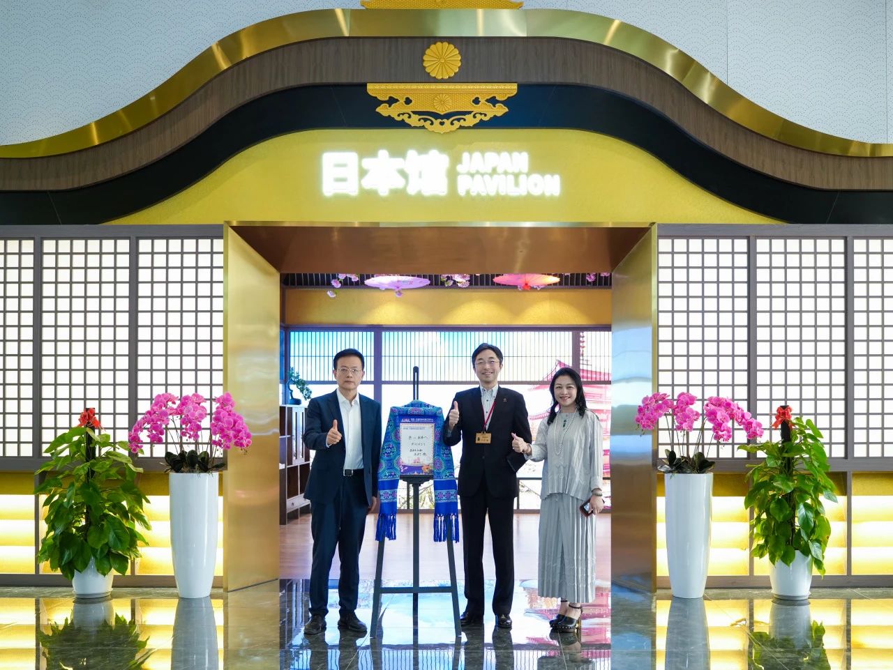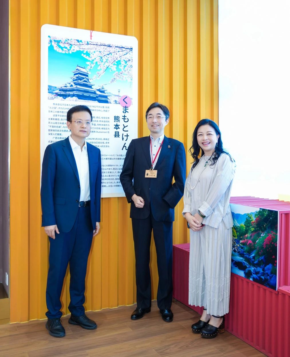 魏然主任(左)、木村敬知事(中)、趙海燕董事長(右)在日本館合影