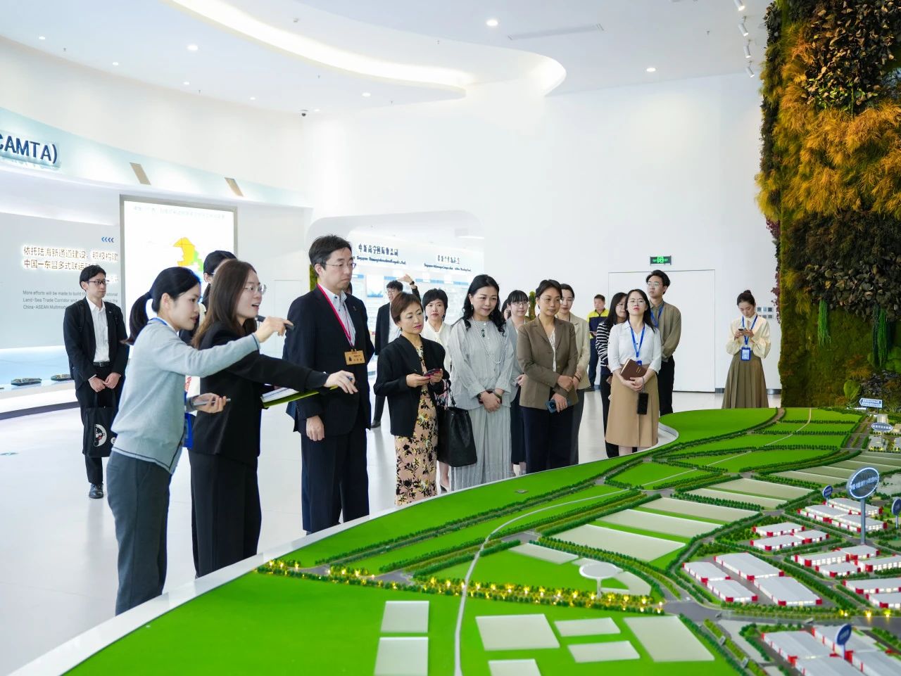 在中新物流園展廳,代表團詳細了解園區(qū)的整體規(guī)劃和發(fā)展情況,對國際陸海貿易新通道的戰(zhàn)略價值以及廣西作為關鍵節(jié)點的樞紐作用有了更深刻的理解。代表團對于園區(qū)選址于廣西南寧,既把握了中國西部大開發(fā)的戰(zhàn)略機遇,又充分發(fā)揮了廣西面向東盟的區(qū)位優(yōu)勢,實現(xiàn)多方共贏發(fā)展格局表示了贊賞。