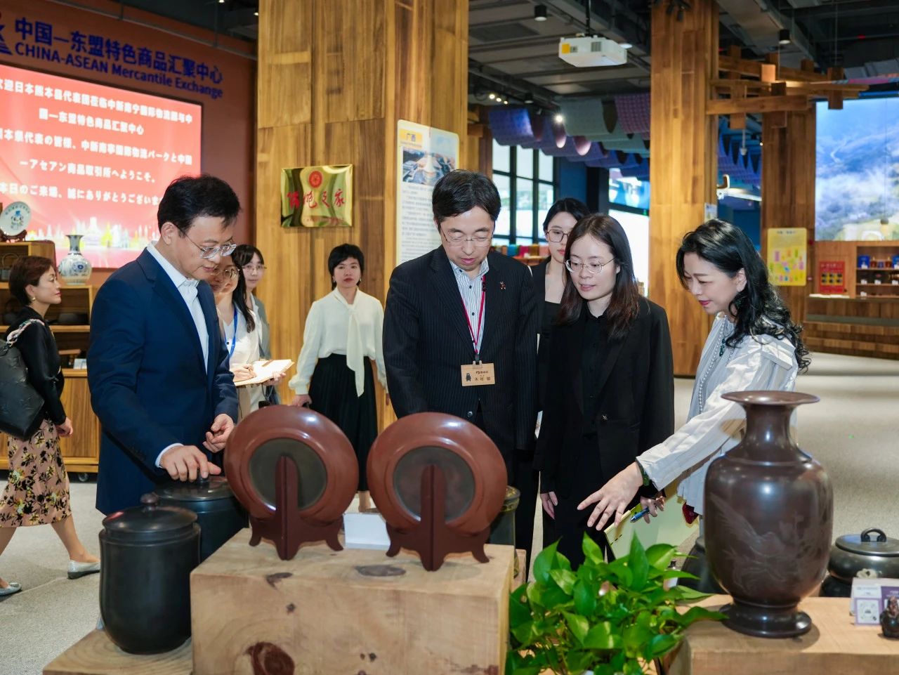 在日本館,雙方還就進一步推動日本尤其是熊本縣的產品通過匯聚中心更好地進入廣西市場進行了深入交流。
